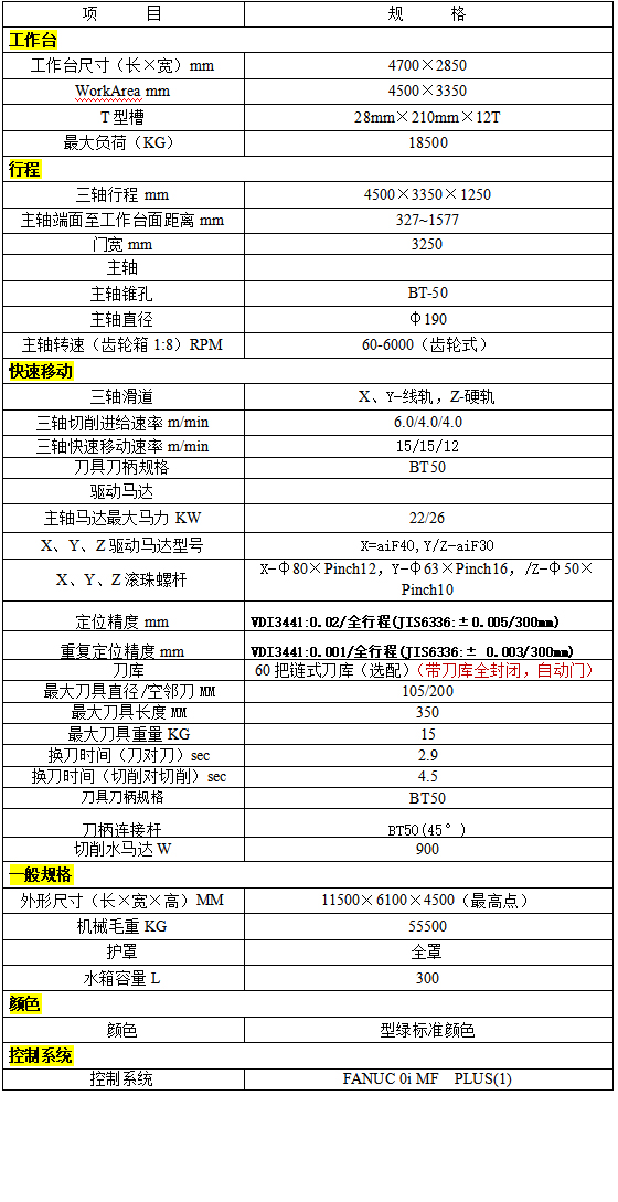 GA-4533機(jī)械規(guī)格: