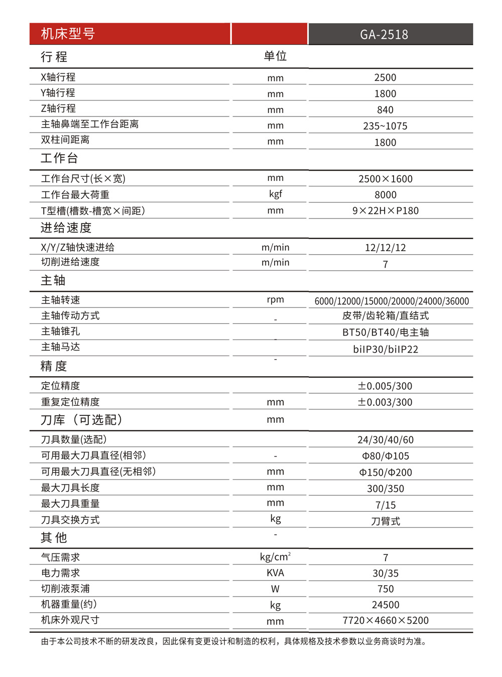三軸行程(X/Y/Z軸):2500x1800x840mm